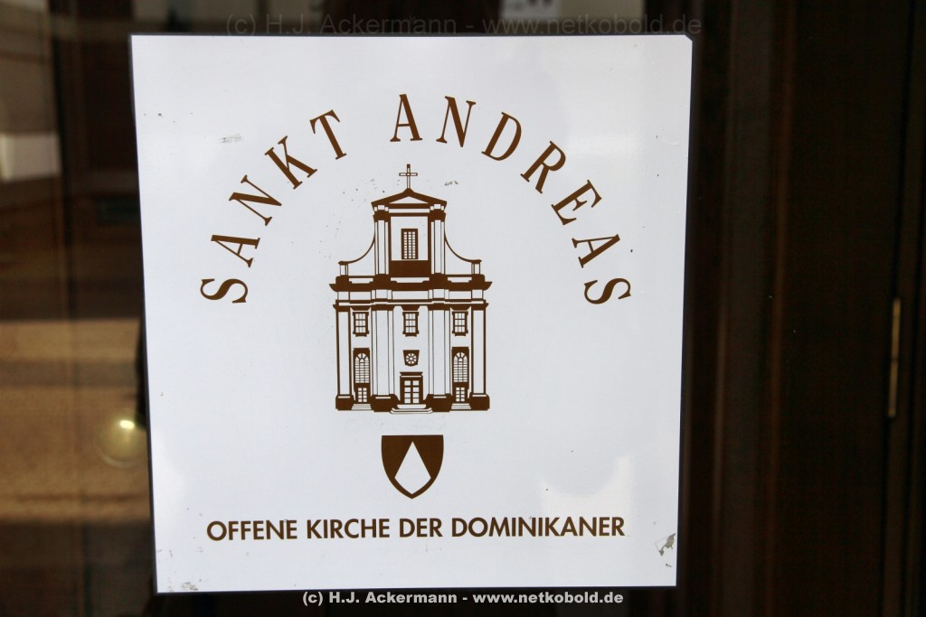 Die katholische Dominikaner Kirche Sankt Andreas liegt in der Düsseldorfer Altstadt in der Andreasstrasse 27 unmittelbar am Düsseldorfer Kom(m)ödchen