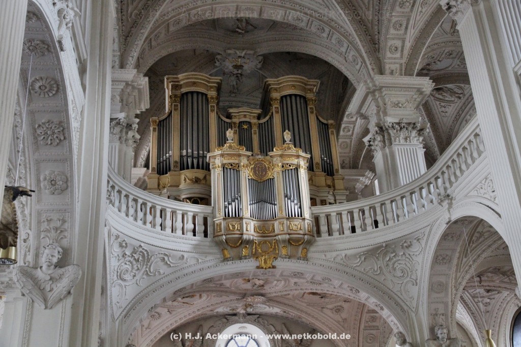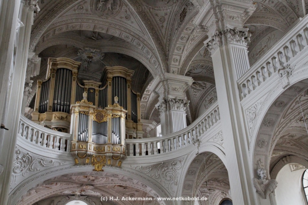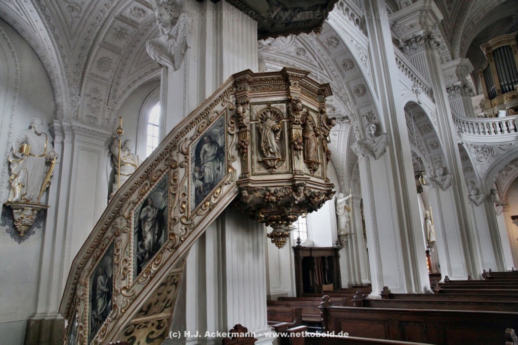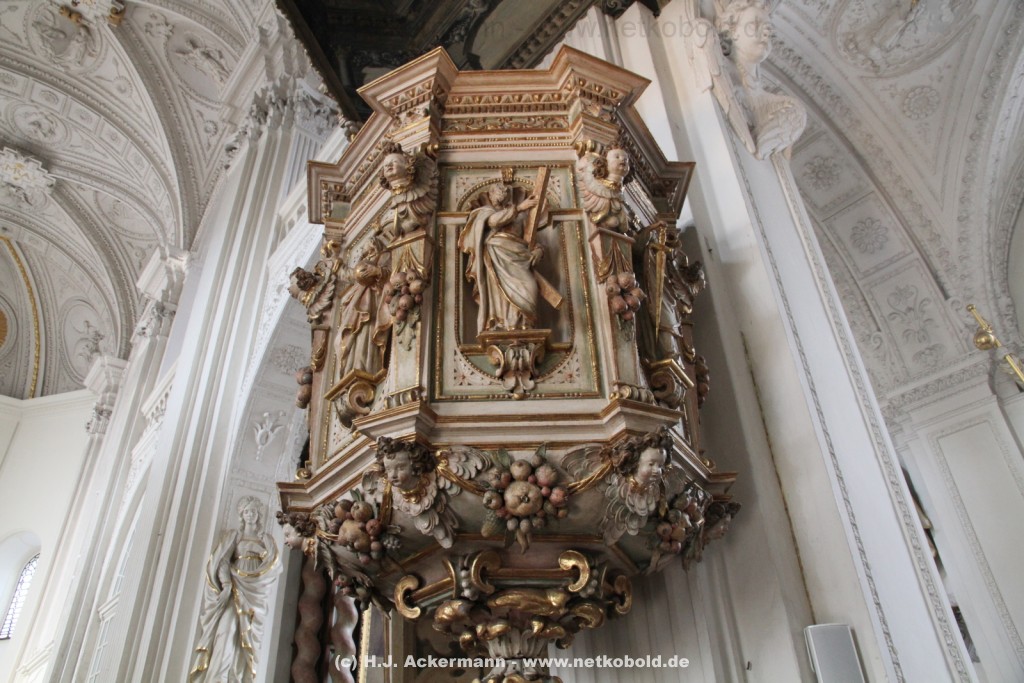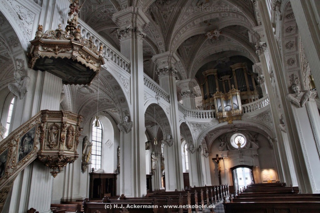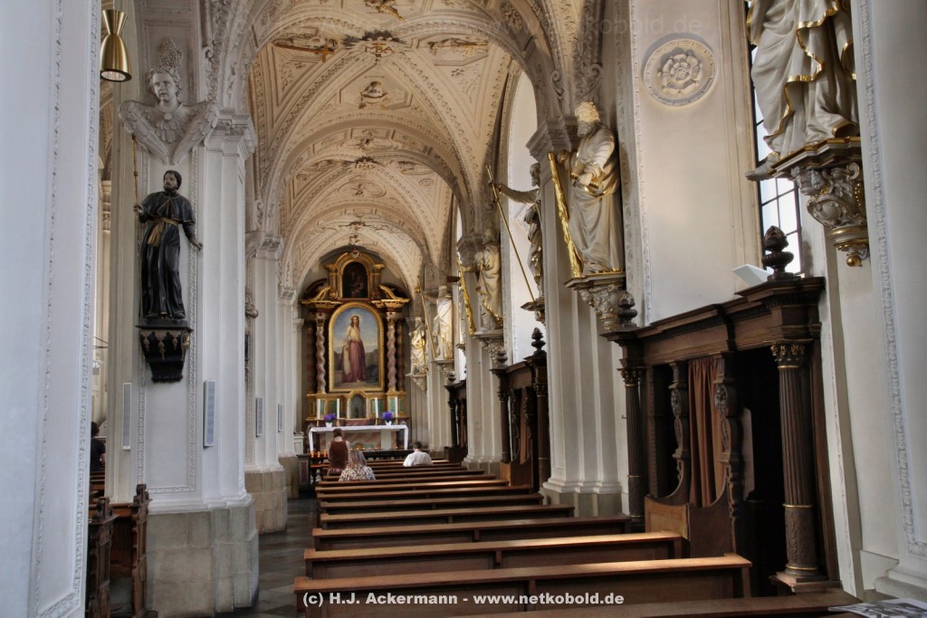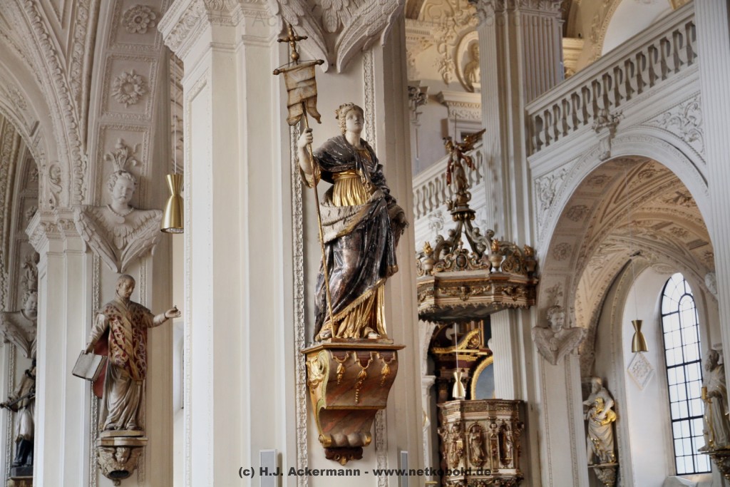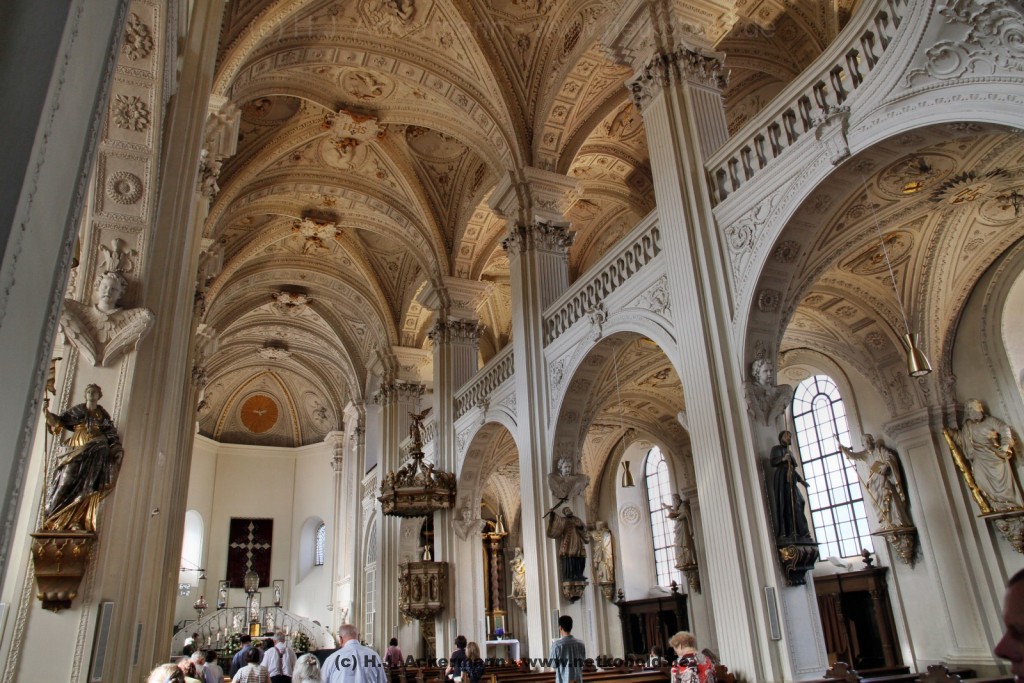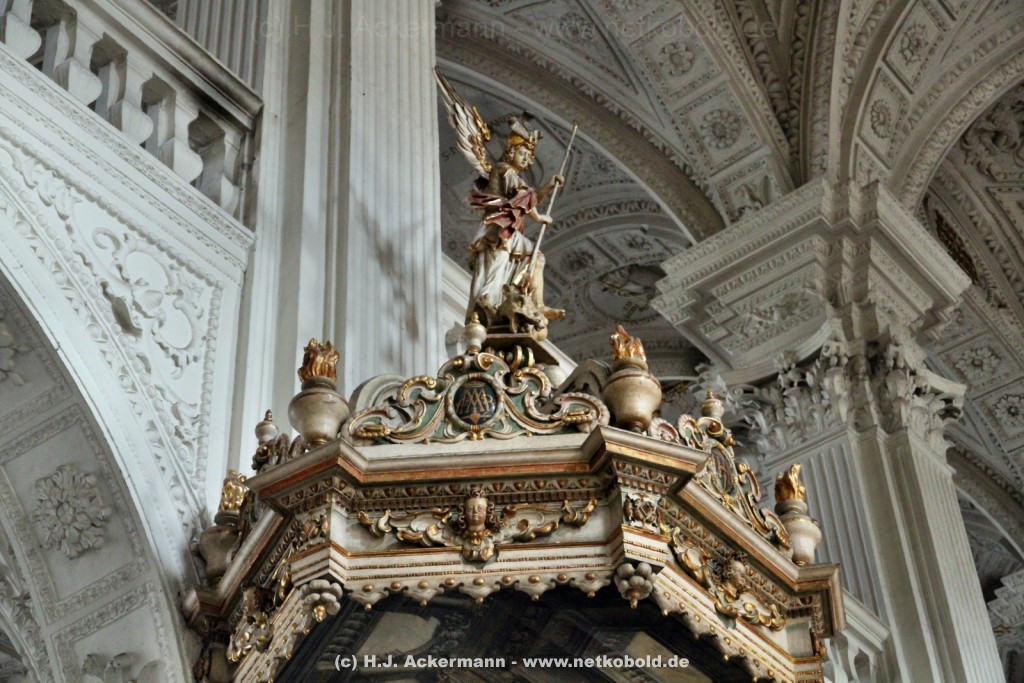Die Kirche wurde während des Dreißigjährigen Krieges von 1622-1629 gebaut. Beim Betreten der prunkvollen Kirche fallen unter anderem sofort Stuckarbeiten an der Decke auf.