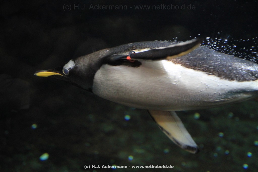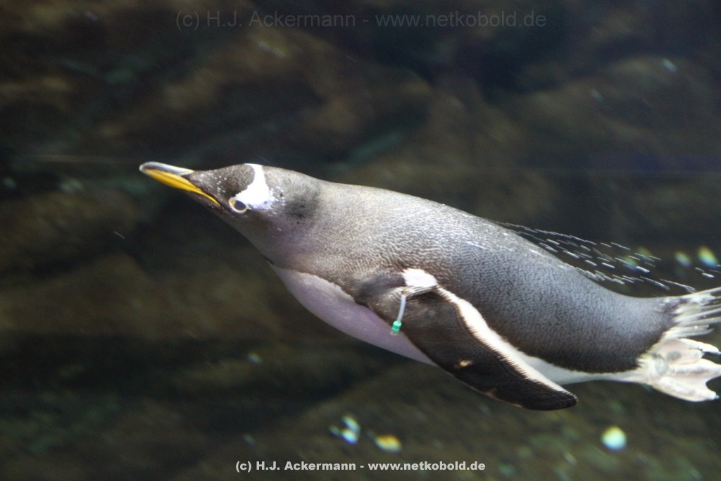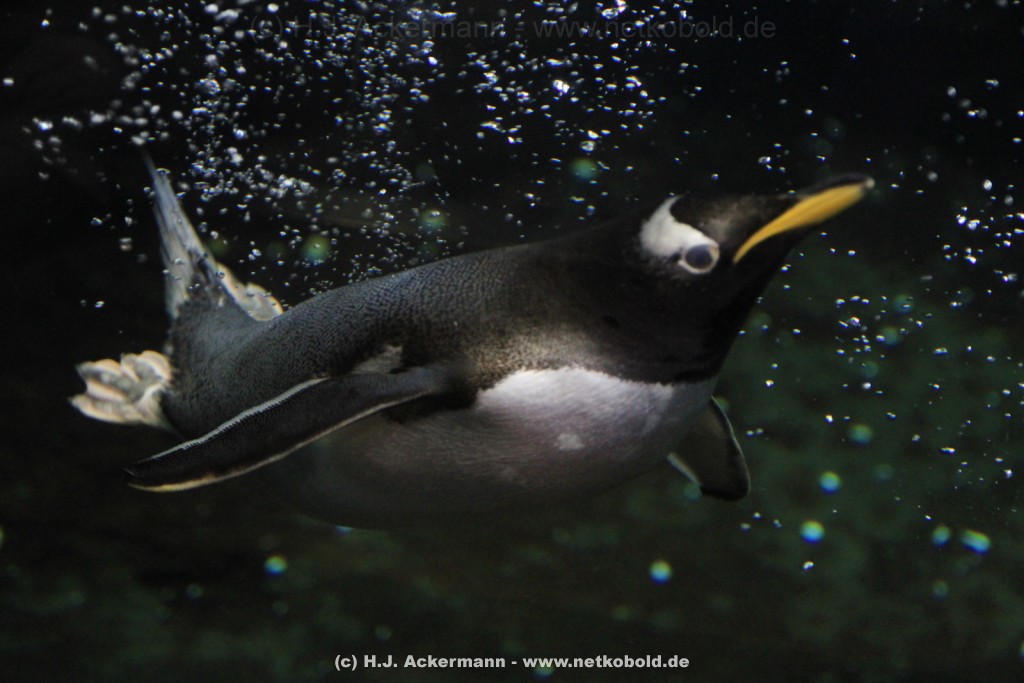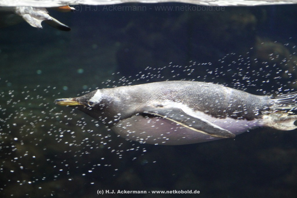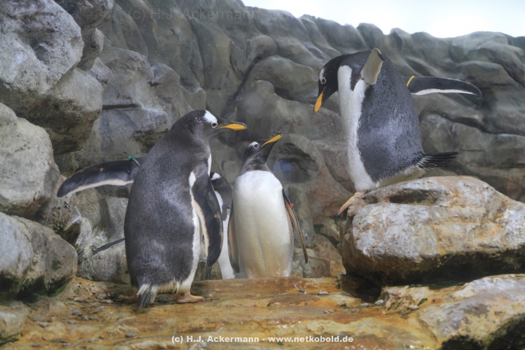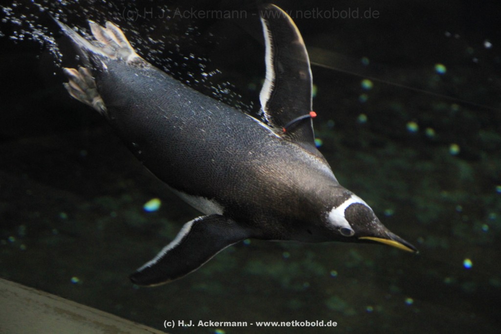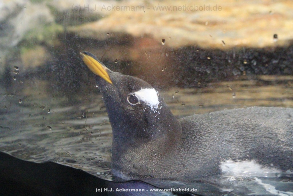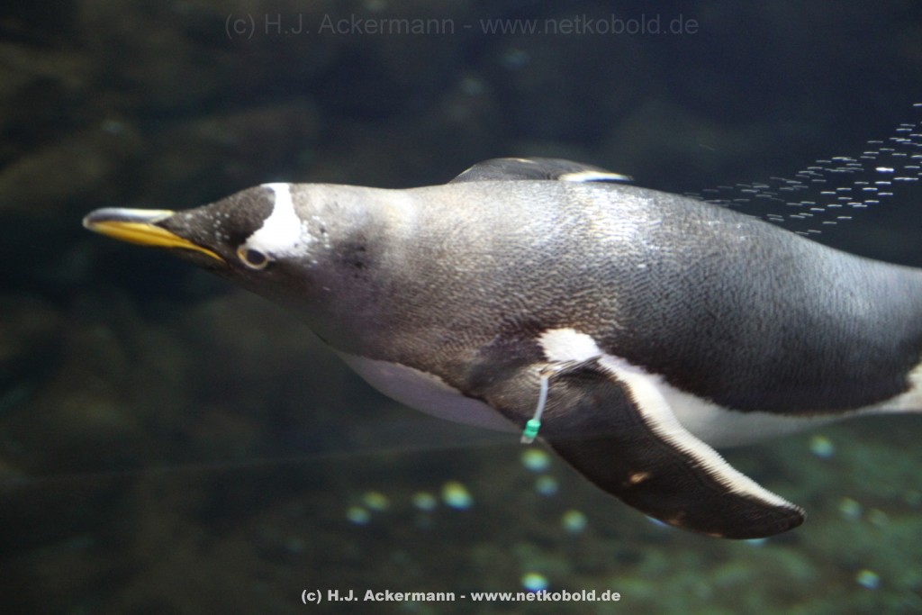 Imposant ist das 17 m lange Pottwalskelett, auf das der Blick sofort fällt, nachdem man den Eingangsbereich passiert hat. Vitrinen und Modelle im Raum informieren über die Anpassung höherer Wirbeltiere an das Leben im Wasser. Lebende Vertreter dieser Anpassungsfähigkeit sind die Eselpinguine, die seit 1987 im Aquazoo in einem sog. „Indoor“- Gehege gehalten werden. Damit sich die Pinguine wohlfühlen und auch brüten können, wird ihre Ersatzheimat auf +10°C gekühlt.