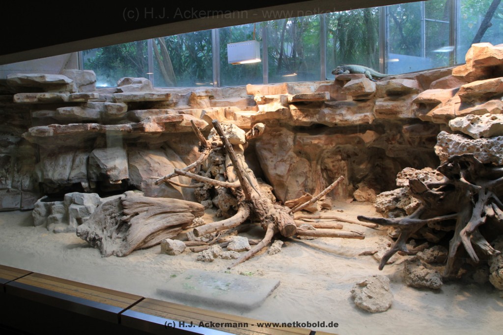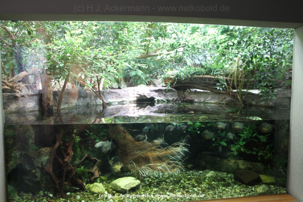 70-80 % Luftfeuchtigkeit bei einer Wärme von 25°C geben dem Besucher beim Betreten der Tropenhalle das Gefühl im Regenwald zu sein. Die Bewohner dieses Lebensraum sind u.a. Krokodile, Fischotter, Papua-Warane und niedlich anzusehende Krallenäffchen.