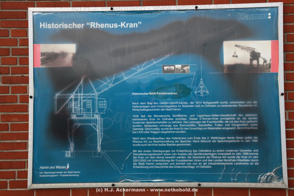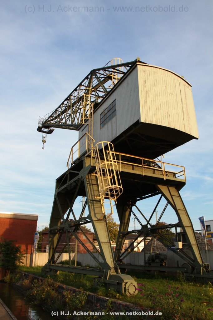 Ein Zeitzeuge aus dem Jahr 1939 ist der 2001/2002 mit EU- und Landesmitteln restaurierte 5-Tonnen-Kran der Firma MAN, der damals von der Firma Münstersche Schifffahrts- und Lagerhaus AG errichtet wurde, um eine höhere Umschlagsgeschwindigkeit beim Löschen der Güter zu erhalten. Genau wie der Hafen wurde der Kran im zweiten Weltkrieg durch Bomben stark beschädigt. Nach dem Krieg wurde er wieder aufgebaut und diente bis 1995 der Rhenus AG zur Bewirtschaftung ihrer Speicher und wurde bei deren Abriss auch außer Dienst genommen. Das Industriedenkmal ist im Osthafen am Sportbootanleger von außen zu besichtigen.