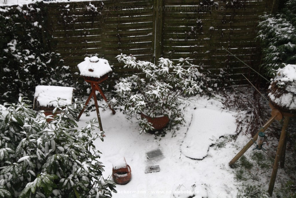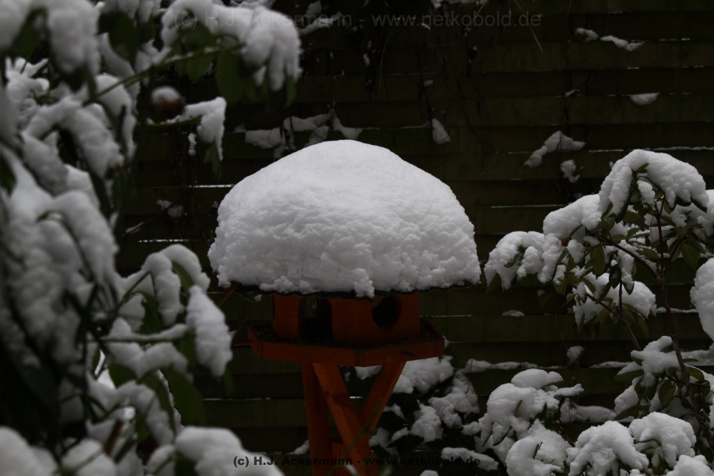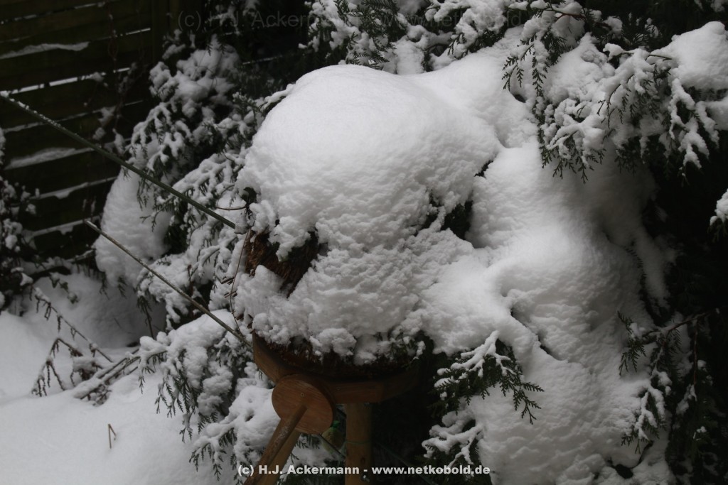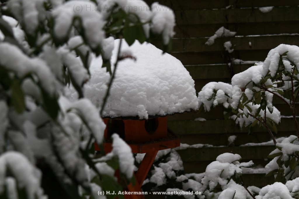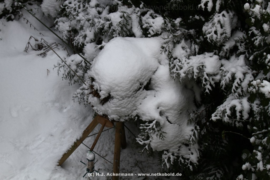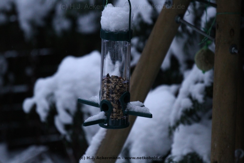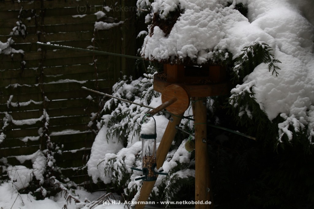 Als der Winter nahte wurde der Betrieb im Garten ständig mehr. Alle Vögel versuchten zwar immer noch in der Natur ihr Futter zu finden, was mit zunehmender Kälte aber schwieriger wurde. Vor allem als dann Schnee lag und es sehr kalt war kamen den ganzen Tag über die verschiedensten Vogelarten in unseren Garten.
