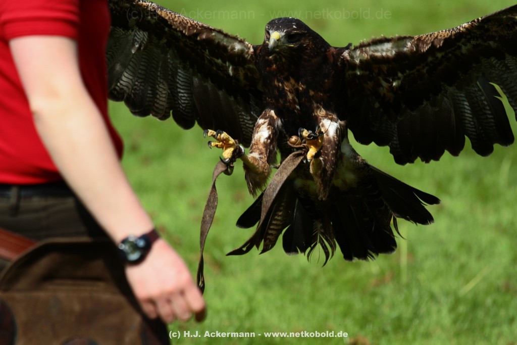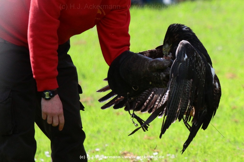 Diese Fotos zeigen die Vögel während der Show. Am Boden, auf dem Arm und im Flug.