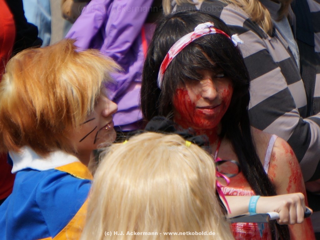 Hunderte als Mangas verkleidete Menschen waren wieder die besondere Attraktion. Alle paar Meter posierten sie um sich von den Kameras und Handy ablichten zu lassen.