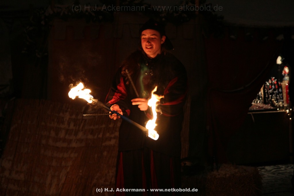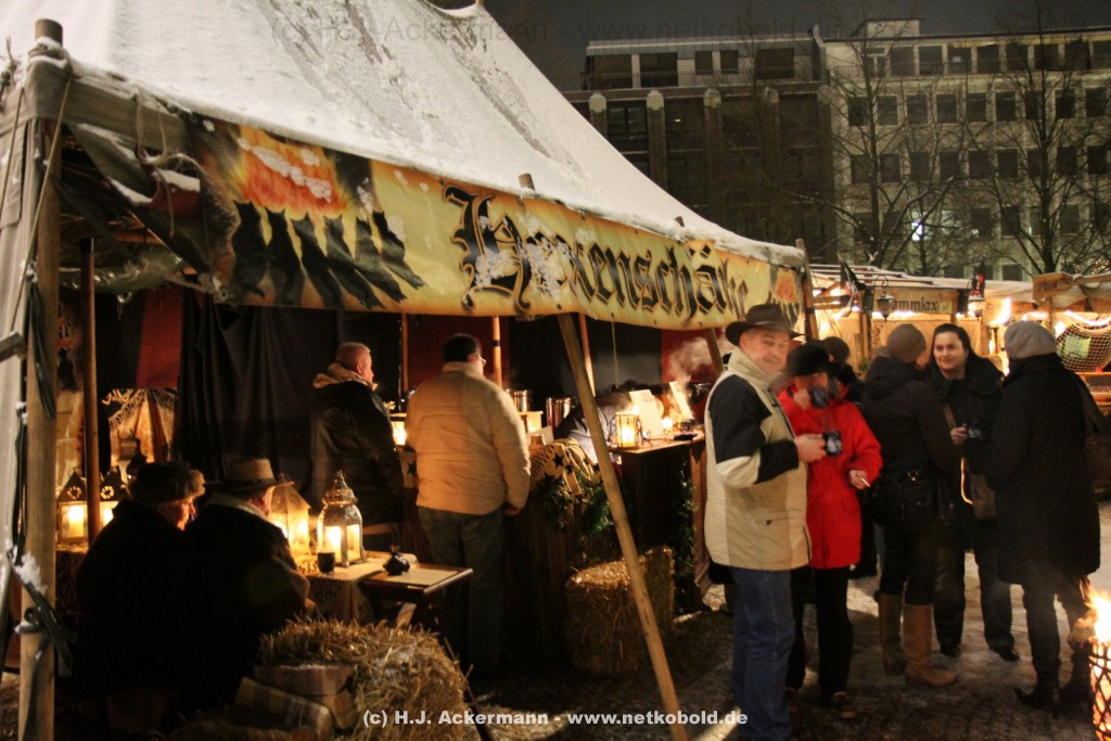 Zum ersten Mal fand dieses Jahr vor der Laurentiuskirche in Wuppertal ein Mittelalterlicher Weihnachtsmarkt statt. Ein Weihnachtsmarkt mal ganz anders. Es gab kein elektrisches Licht. In den kleinen gemütlichen Buden empfingen die Händler in mittelalterlichen Gewändern die Besucher mit Kerzenlicht. Für Unterhaltung sorgte eine Rittergruppe mit Ritterkämpfen.