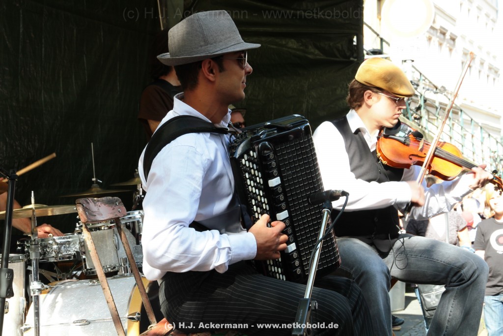 Die Interessengemeinschaft Luisenstraße hat für die 400 Jahrfeier ein tolles Programm auf die Beine gestellt. Beatz und Kekse stellte eine Akustikbühne, auf der am Samstag die Organisatoren der „Fangesänge“, Ingo Zapke und Michael Walmsley auftraten.