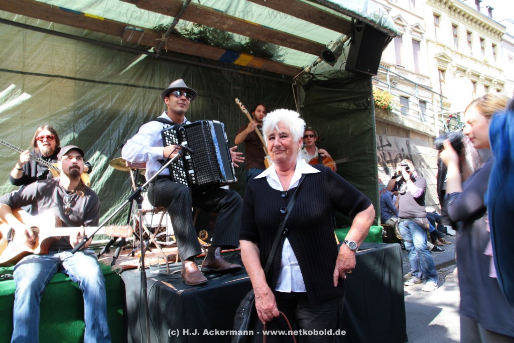 Bühne Baulücke war Veranstaltungsort für Gitarrenmusik, Pantomime, Tanztheater und Schauspiel. Auf der Straßenbühne von Café du Congo und Katzengold fanden Videoinstallationen, Livemusik und DJSets statt.