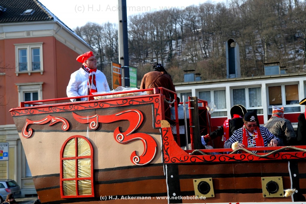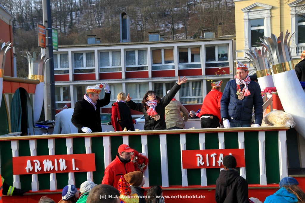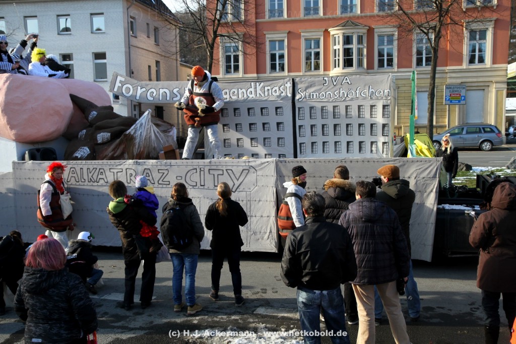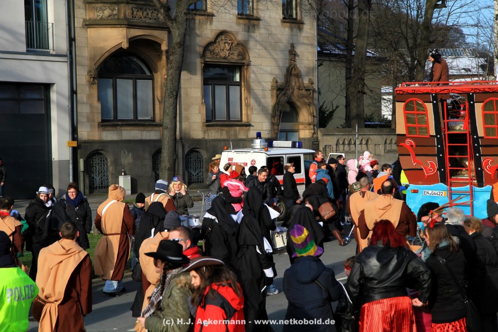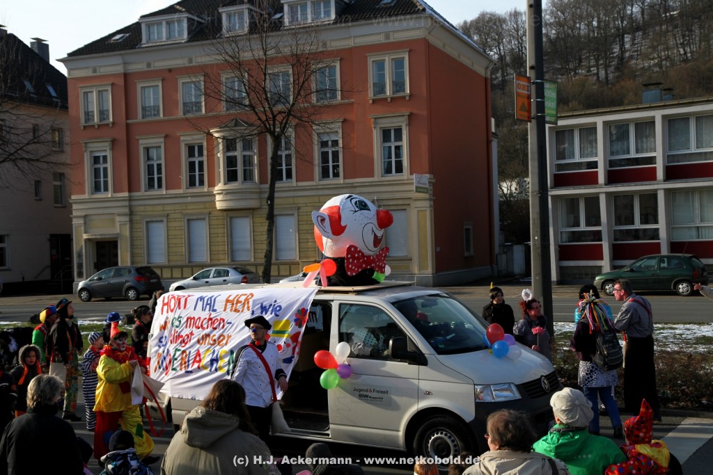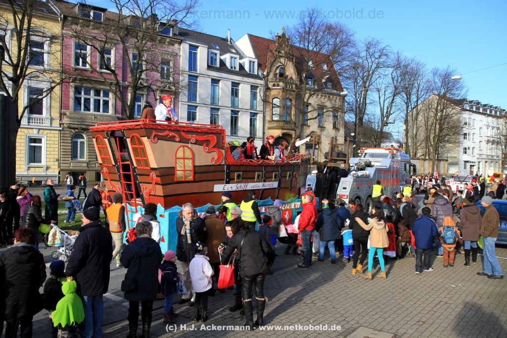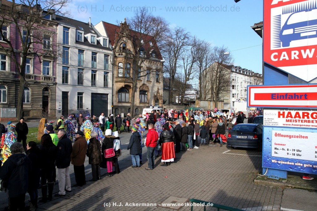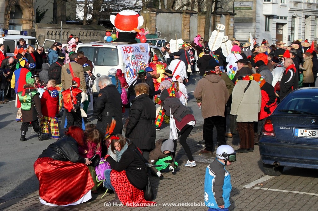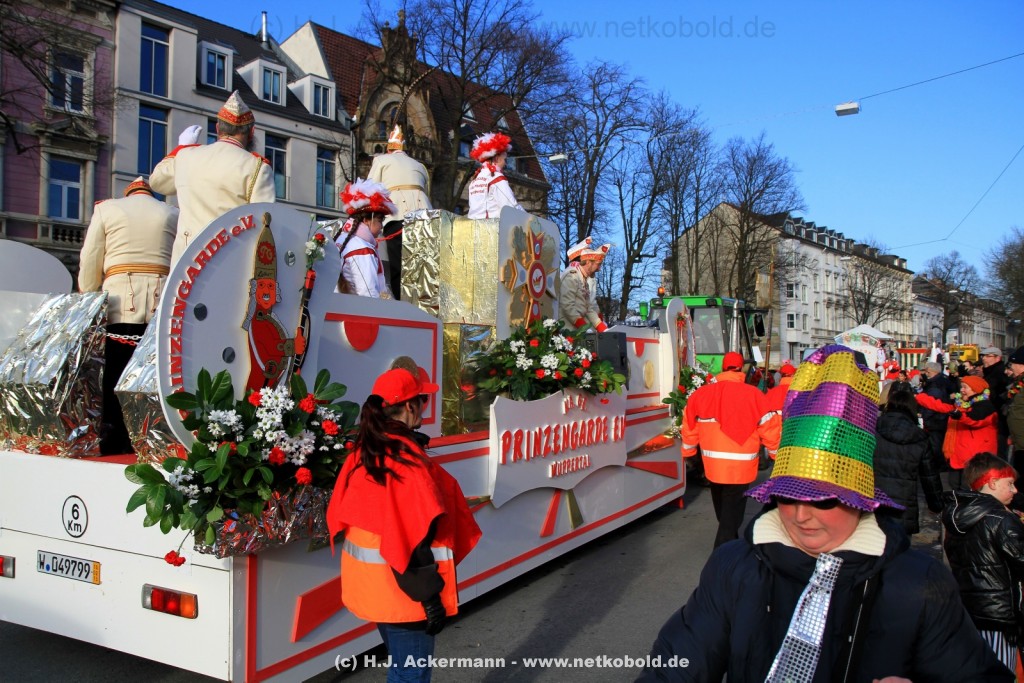 Der Karnevalszug in Wuppertal zog dieses Jahr von Elberfeld nach Oberbarmen. Ab 12:30 Uhr wurde der Zug am Hofkamp aufgestellt und zog dann über die Haspeler Brücke auf die Friedrich-Engels-Alle. Von dort ging es dann bis nach Oberbarmen. Das Motto des Zuges war: „Komm mit – Mach mit – Lach mit“. Ca. 80 Tausend Besucher säumten den Straßenrand vom Hofkamp bis zum Wupperfeld. Unterwegs waren dieses Jahr 30 Wagen und ca. neun närrische Fußgruppen.