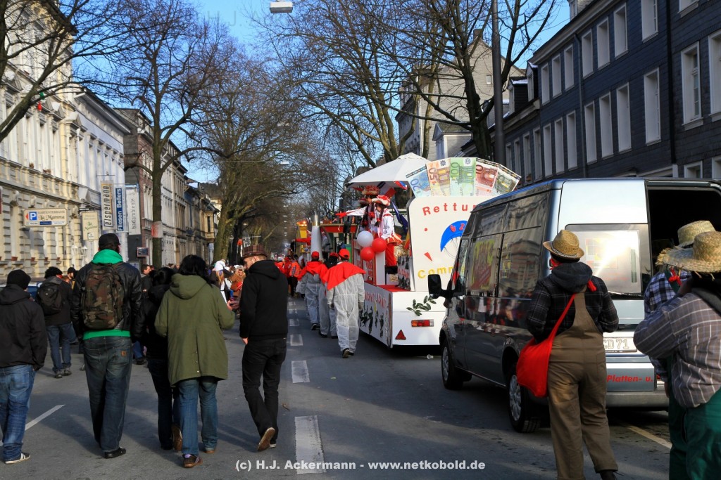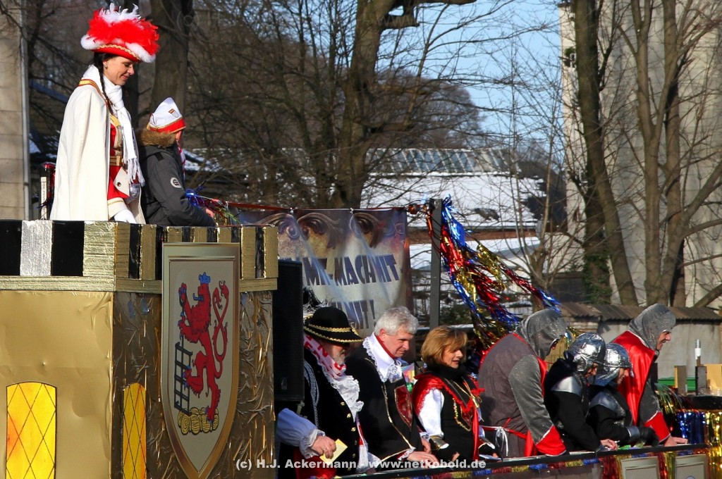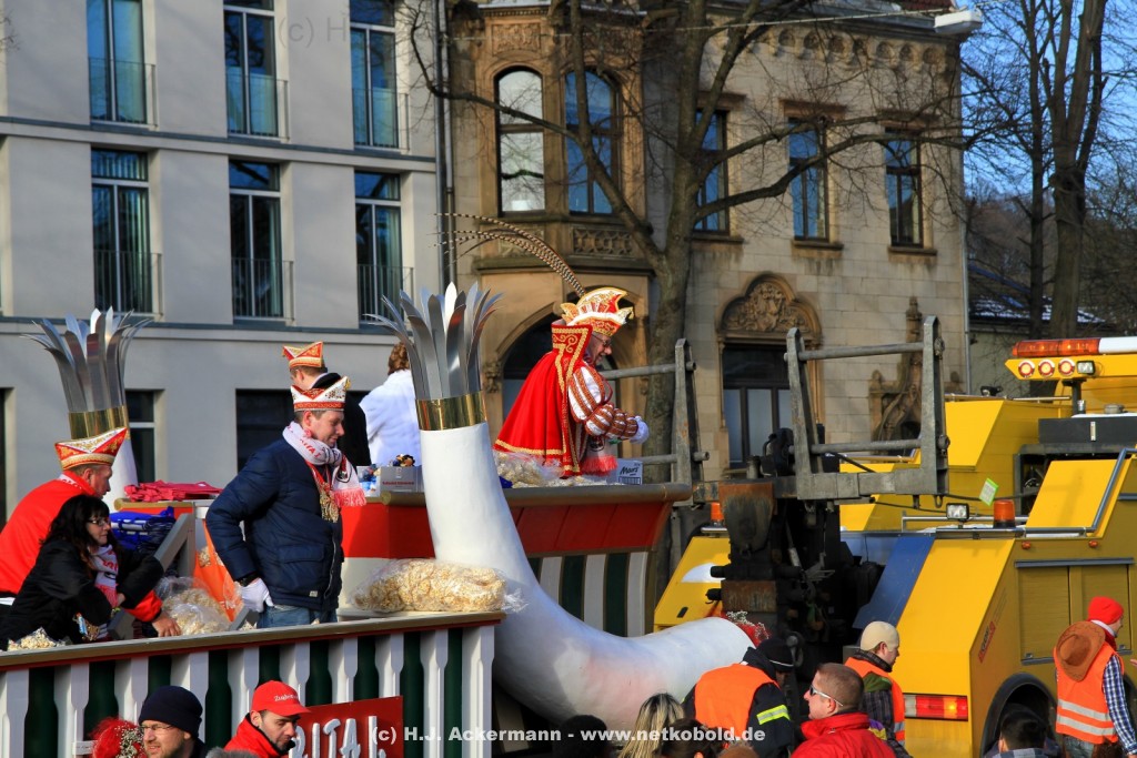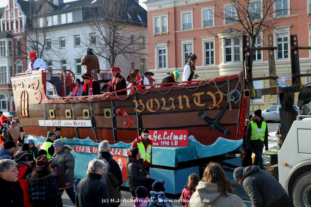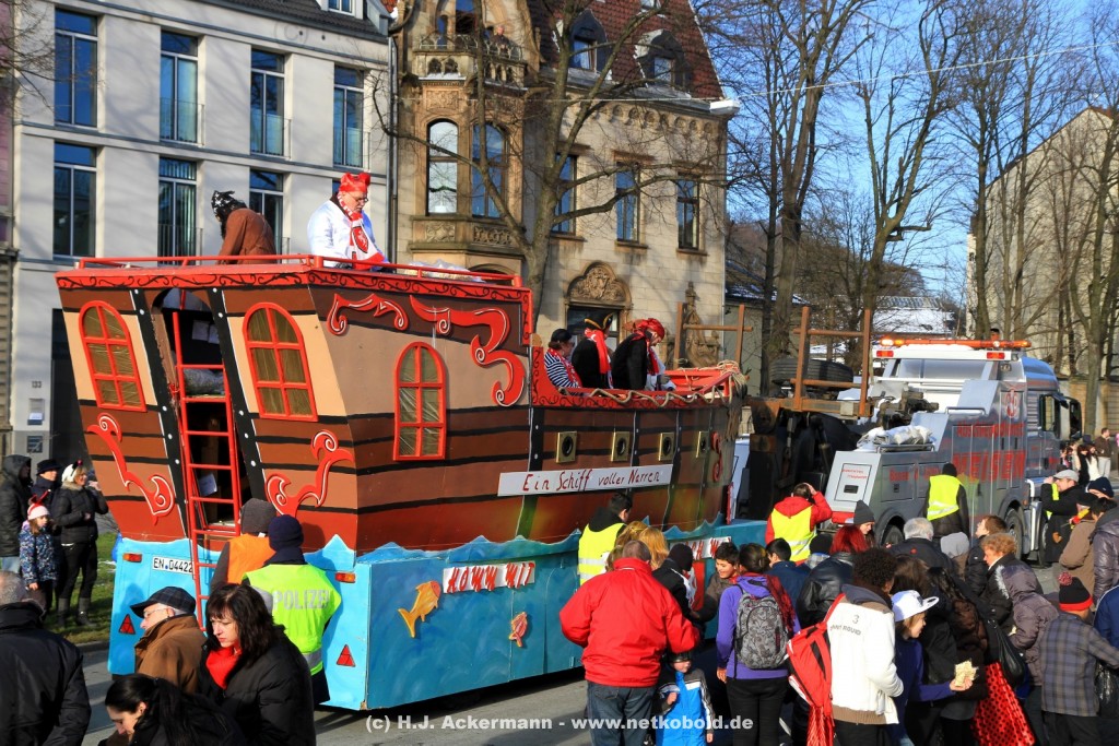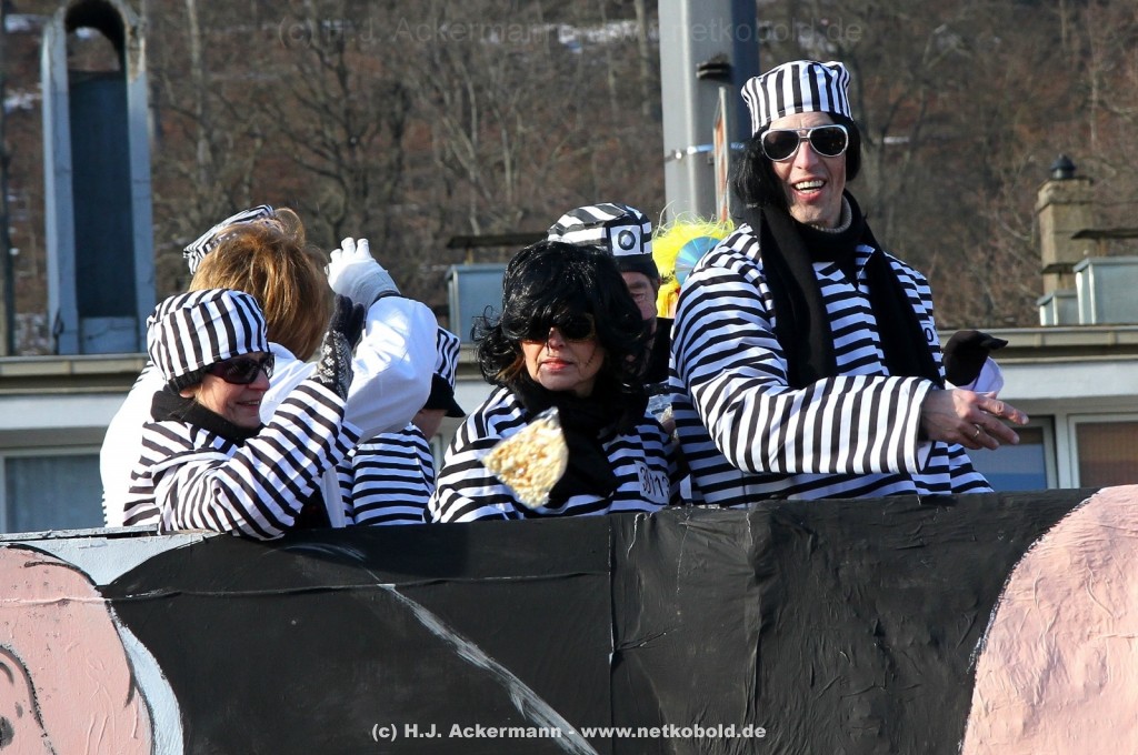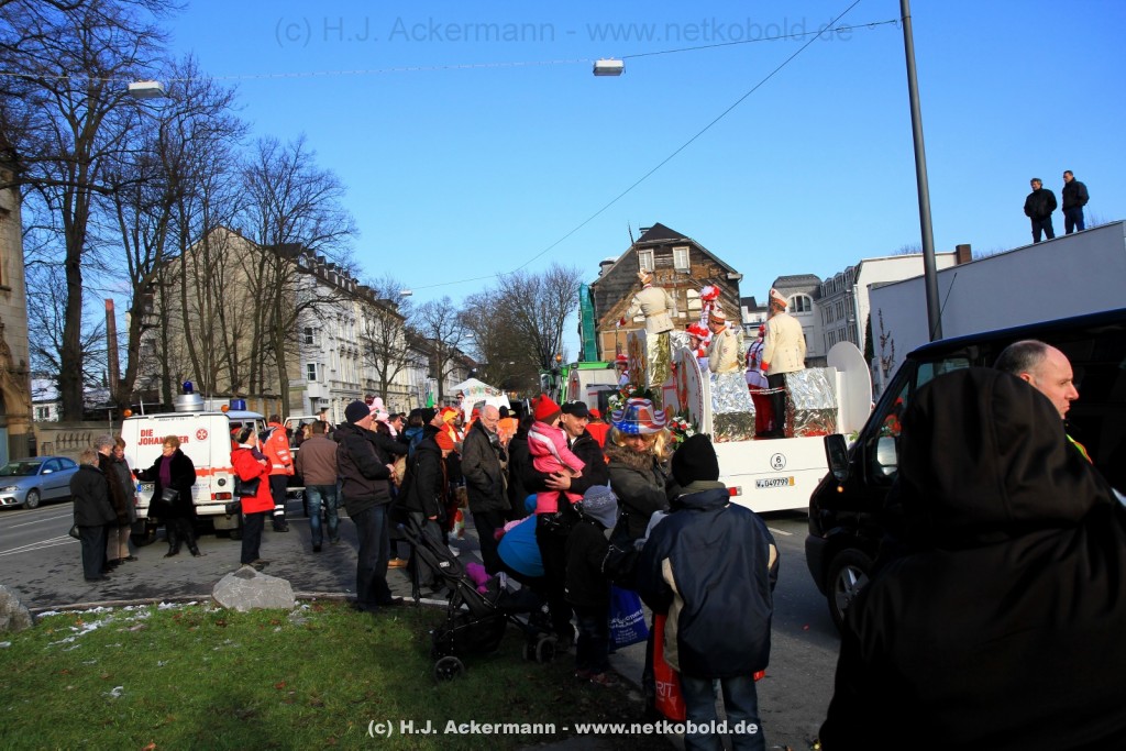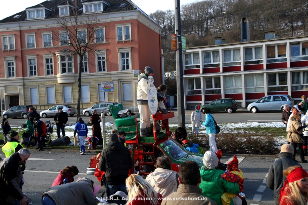 Der Karnevalszug in Wuppertal zog dieses Jahr von Elberfeld nach Oberbarmen. Ab 12:30 Uhr wurde der Zug am Hofkamp aufgestellt und zog dann über die Haspeler Brücke auf die Friedrich-Engels-Alle. Von dort ging es dann bis nach Oberbarmen. Das Motto des Zuges war: „Komm mit – Mach mit – Lach mit“. Ca. 80 Tausend Besucher säumten den Straßenrand vom Hofkamp bis zum Wupperfeld. Unterwegs waren dieses Jahr 30 Wagen und ca. neun närrische Fußgruppen.