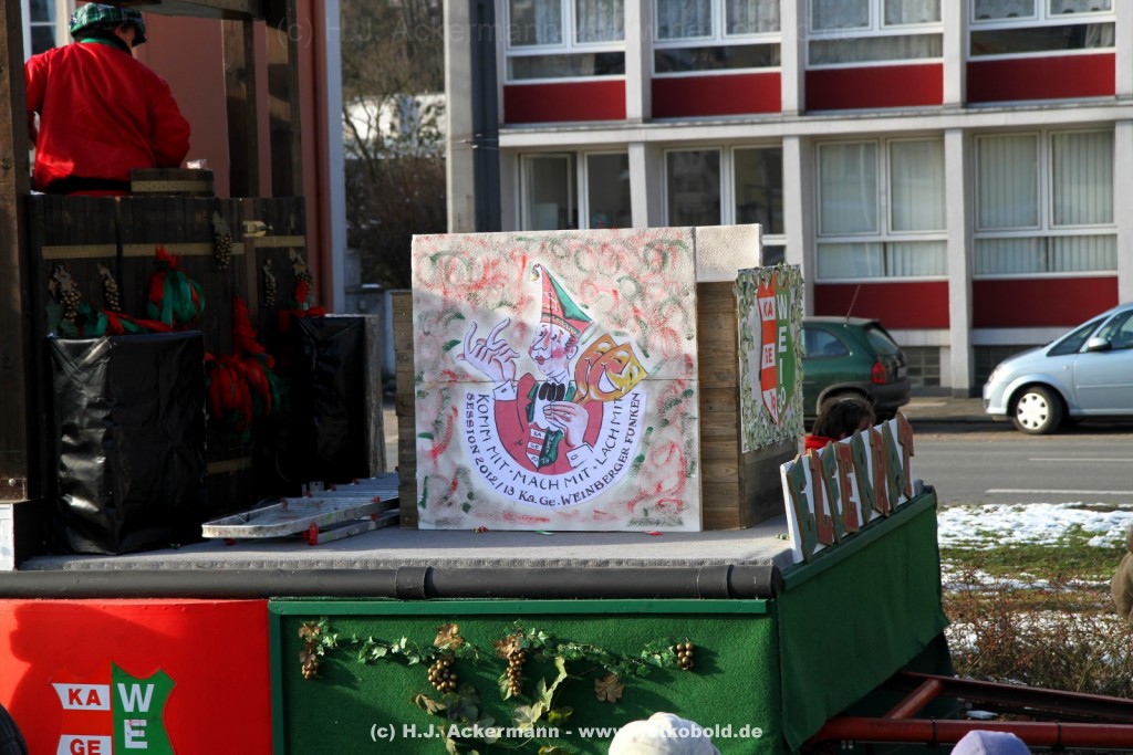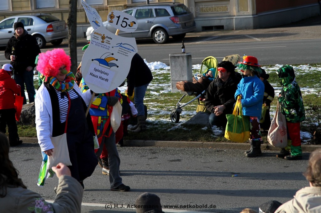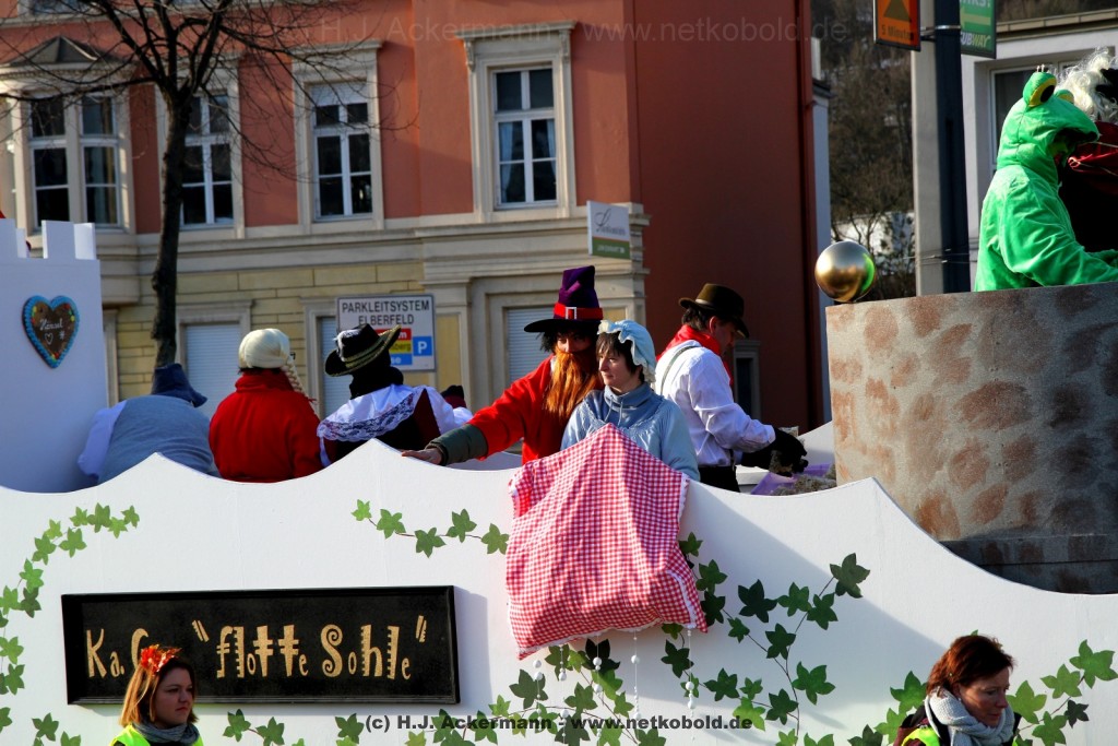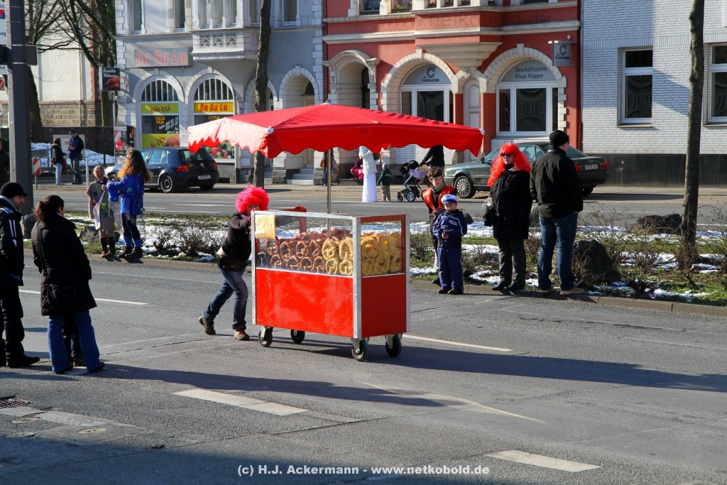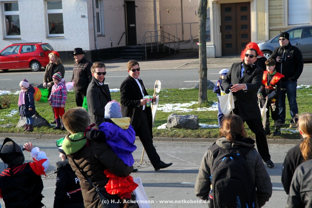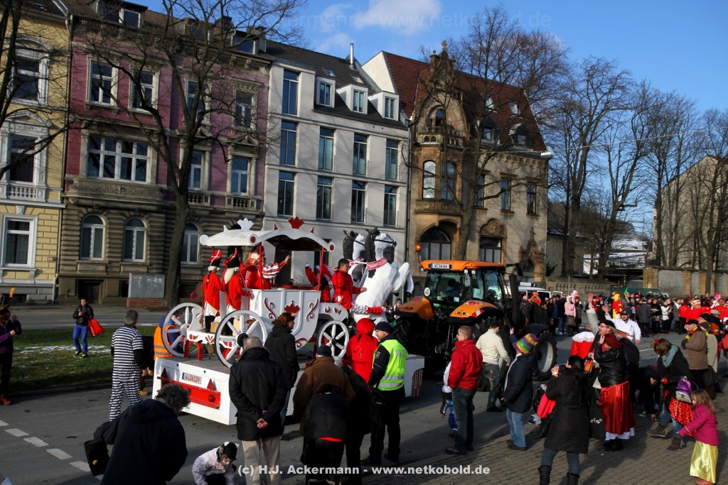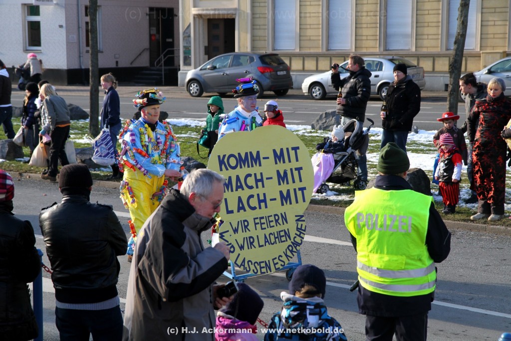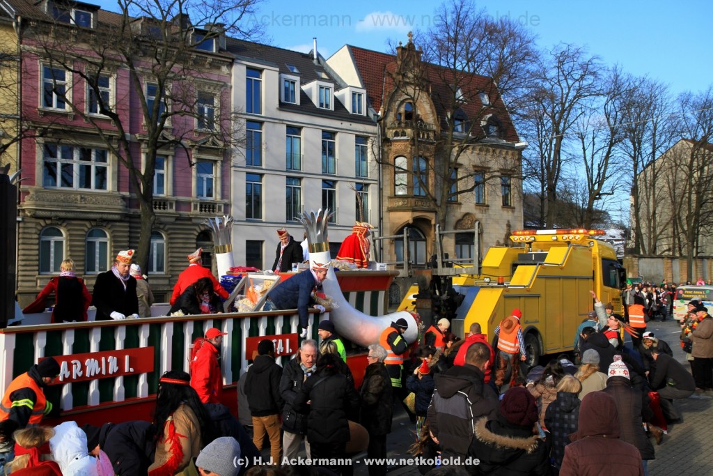 Der Karnevalszug in Wuppertal zog dieses Jahr von Elberfeld nach Oberbarmen. Ab 12:30 Uhr wurde der Zug am Hofkamp aufgestellt und zog dann über die Haspeler Brücke auf die Friedrich-Engels-Alle. Von dort ging es dann bis nach Oberbarmen. Das Motto des Zuges war: „Komm mit – Mach mit – Lach mit“. Ca. 80 Tausend Besucher säumten den Straßenrand vom Hofkamp bis zum Wupperfeld. Unterwegs waren dieses Jahr 30 Wagen und ca. neun närrische Fußgruppen.