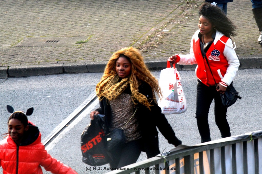 Die Fotos auf dieser Seite zeigen Besucher des Zuges in Elberfeld und Barmen. Maskiert, verkleidet, angemalt oder auch einfach nur in Strassenkleidung säumten ca. 80 Tausend Besucher den Strassendrand vom Hofkamp bis zum Wupperfeld.
